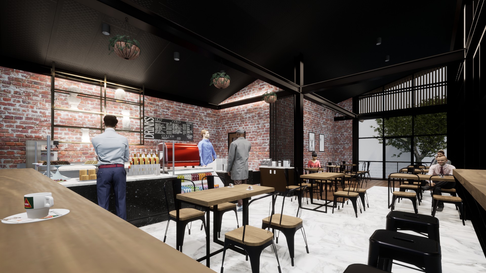 Azerbaycan'da bulununan CoffeBox projemiz için modern çizgiler kullandık.